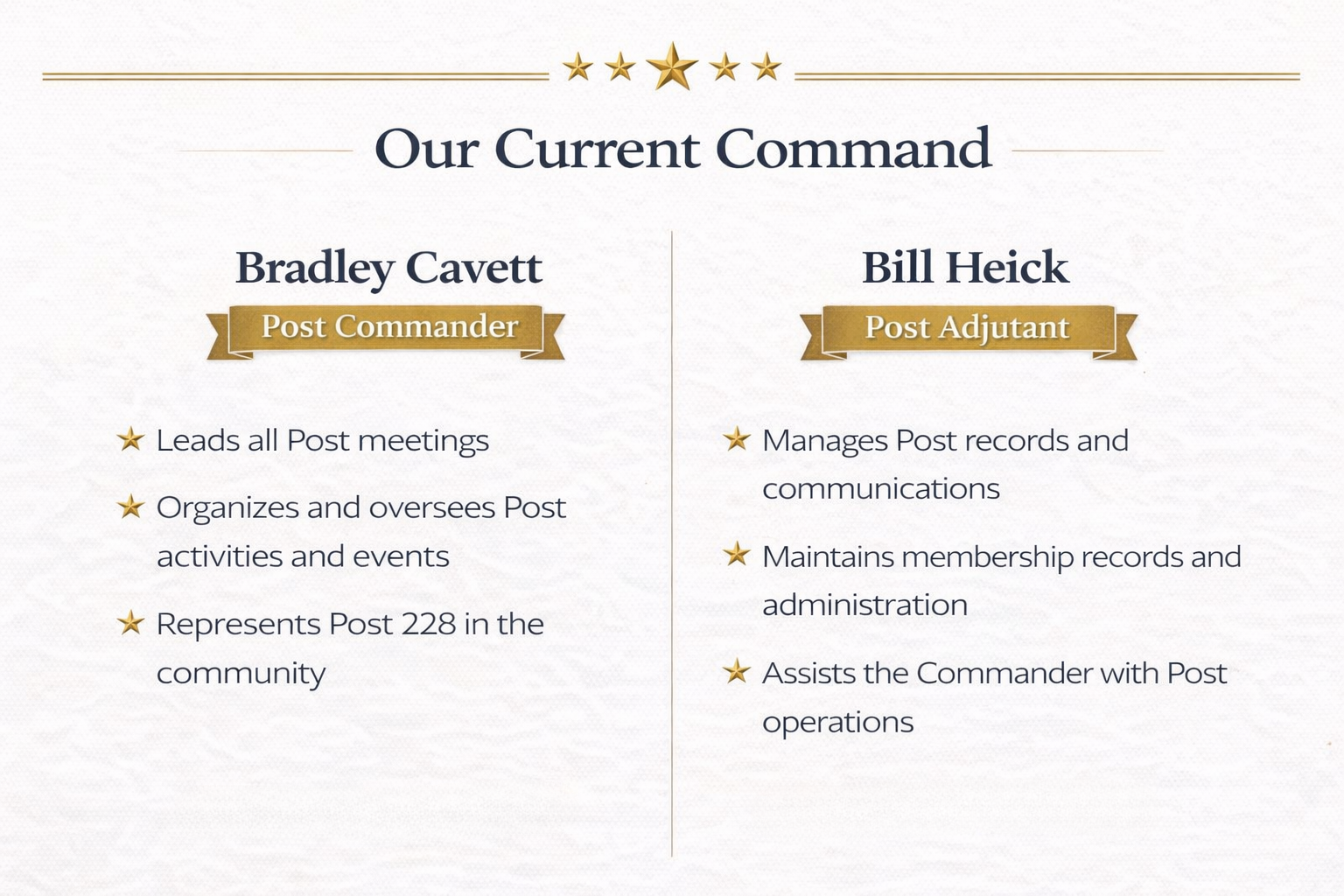 For generations, Kuch-Querl Post 228 has served as a gathering place for veterans in Williamsburg and the surrounding communities. Members work to support fellow veterans, honor those who served, and promote patriotism through community events, ceremonies, and programs that strengthen civic life.